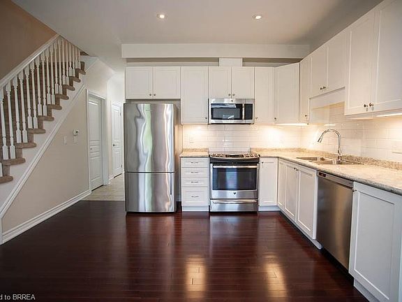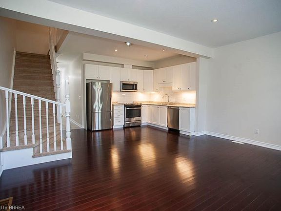 Location, location – Welcome home to 59-80 Willow Street, a stunning freehold townhome located in Ontario’s prettiest town of Paris, just minutes from the bustling downtown core with shops & cafés. Offering 3 bedrooms, 2.5 bathrooms, and a single-car garage. Inside, the bright foyer welcomes you with tile flooring and closet space for everyday convenience. The open-concept main level features a spacious living room with a cozy fireplace. French doors and large windows fill the space with natural light while offering access to the backyard patio. The modern kitchen is finished with white cabinetry, stainless steel appliances, and a subway tile backsplash. Overlooking the dining and living areas, this space is perfect for entertaining. A convenient powder room completes the main floor. Upstairs, you’ll find three generous bedrooms, including a primary suite with a walk-in closet and a private ensuite with tiled shower and vanity. Two additional bedrooms share a full 4-piece bath with tiled tub/shower combo. A second-floor laundry room with cabinetry and a sink adds everyday functionality. Outside, enjoy a private, fully fenced yard with patio space—ideal for summer barbecues or quiet evenings. With curb appeal and proximity to schools, parks, trails, and amenities, this home offers both style and convenience in a highly sought-after location.