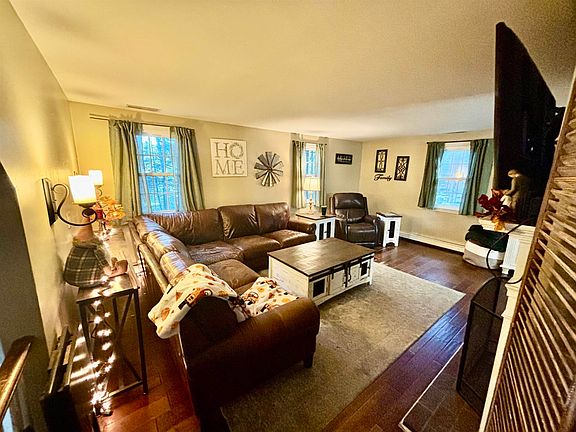 Welcome Home to 80 Wire Road, Merrimack! This home doesn’t just check boxes — it feels good the moment you step inside. With 3 bedrooms, 2.5 baths, and over 2,000 sqft of living space, it blends comfort, charm, and modern updates in all the right ways. Step into the heart of the home: a granite and maple kitchen with stainless steel appliances, tile floors, and plenty of space to whip up meals or gather around the island with friends. The main level shines with rich hardwood floors, a cozy fireplace in the living room, and a dining room dressed up with crown and box moldings. Off the back, a three-season porch with cathedral ceilings and skylights is the kind of space you’ll never want to leave — whether it’s morning coffee or late-night laughter. Upstairs, the owner’s suite offers a private retreat complete with a beautifully tiled bathroom and custom shower. The lower level is made for good times and everyday living — featuring a second fireplace, built-ins, and a wet bar, plus a separate office/den that’s ideal for working from home, hobbies, or a quiet study space. Outside, the fun continues: a custom stone patio with outdoor fireplace, granite walkways, and an oversized shed (with kennel and wood storage!) give the yard both beauty and function. All this sits on nearly an acre of land, framed by stone walls and mature landscaping — the perfect mix of peaceful and practical. This is move-in ready — settle in before the holidays and enjoy cozy fireplace nights this winter!