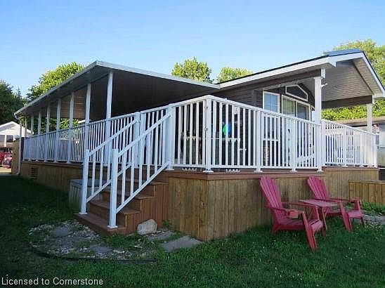 Welcome to your dream waterfront cottage at Sherkston Shores Park! This charming retreat offers three cozy bedrooms and one bathroom, making it perfect for family getaways or a serene escape. Step outside onto the expansive composite-covered deck, where you can relax and enjoy breathtaking views of the water. Inside, the cottage features a comfortable and inviting interior designed for both relaxation and convenience. The property is financeable, making it an accessible opportunity for those looking to invest in a slice of paradise. Sherkston Shores Park is a vibrant community with a wealth of amenities right at your doorstep. Dive into fun at the park's impressive waterpark, let the kids explore the playgrounds, or challenge your family to a round of mini golf. For entertainment, there's an arcade, and dining options include a restaurant, food trucks, and seasonal farmer's markets. With so much to do, you’ll never be short of activities. This waterfront cottage offers the perfect blend of comfort and convenience in a lively and engaging environment. Don’t miss your chance to own a piece of this exciting and picturesque community!