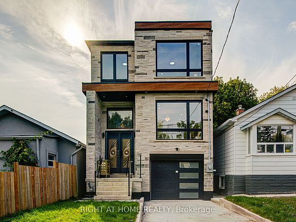 Welcome to 80 Haslam Street in Scarborough, a meticulously designed new construction that seamlessly integrates style, comfort, and premium craftsmanship. This custom-built, detached residence in a mature area features four plus two bedrooms and four plus one bathrooms, with approximately 2300 square feet on the main and second floors, plus an additional 800 square feet in the basement. The modern kitchen features quartz countertops and a waterfall island. The kitchen, dining, and family rooms boast 13-foot high ceilings and ample windows, allowing for abundant natural light. Warm engineered hardwood floors extend throughout the sunlit living and formal areas, creating an inviting and sophisticated ambiance. Accentuated walls and carefully selected lighting provide a contemporary, ambient glow to every room. The heart of the home features a beautifully appointed kitchen showcasing high-end appliances, offering the perfect blend of functionality and sophistication for both daily living and entertaining. Conveniently located in a thriving neighbourhood, the property is just minutes away from the waterfront, beach, schools, parks, grocery stores, coffee shops, and shopping centers. The furnace, air conditioner, and hot water tank are owned. * Please note that the current property taxes are based on the previous property structure and are subject to reassessment.*