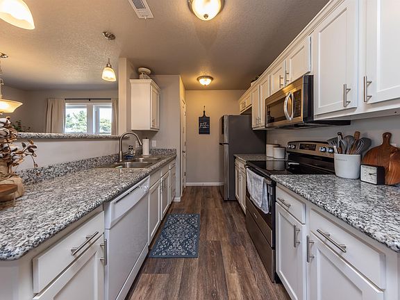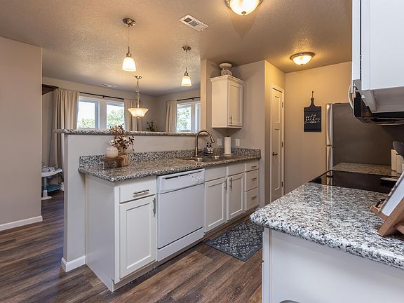 Great 3 bedroom newer construction home with just the right amount of main-floor living space! Open concept living room, dining room, and kitchen separate two bedrooms and a full bath from the primary ensuite with large walk in shower and a big walk in closet. Utility laundry mudroom lead to the 2 car attached garage and provides extra storage. Just enough closets and extra space in the garage for all of your stuff, this well cared for home will be ready for you to move right in, skip the projects, and enjoy time with family, friends, and drinks watching the sunsets on the patio.