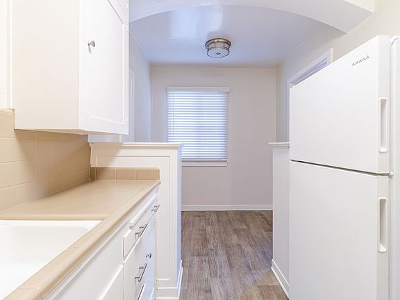 This amazing studio space offers an open living area, which provides multiple options for furniture placement, modern carpet, wood inspired flooring in the kitchen and bathroom, warm interior paint, extra-large wardrobe closet, updated window coverings, a ceiling fan great for air flow and updated lighting. The kitchen is separate and comes with excellent cabinet and counter space including decorative glass faced cabinets, full size appliances, and a dining nook.