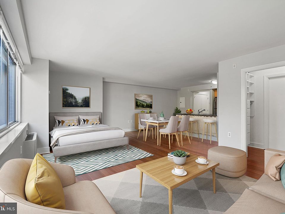 Big, bright, and beautifully flexible — this spacious studio has all the right moves (and enough square footage to carve out a true one-bedroom if you’d like!). Sunlight streams through a wall of windows, showing off gleaming wood floors and a fabulous modern kitchen that’s ready for weeknight dinners or weekend brunch parties. Located in a fantastic full-service building, your condo fee covers all the good stuff: All utilities, fitness center, yoga/dance studio, resident office space with a separate private meeting room and a convenient copy/fax machine, club room for entertaining, outdoor pool for those summer days, front-desk concierge service, laundry room and communal library. Just steps from The Wharf, the National Mall, and everything Southwest DC has to offer — this is city living at its brightest. Whether you’re looking for your first home, a smart investment (minimum lease is 6 months), or a low-maintenance landing pad, this one delivers. Watch your equity (and SW’s energy) grow — this neighborhood is only getting hotter!