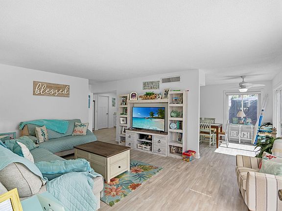 Welcome to your perfect beachside escape. This nicely updated, 3-bedroom, 2.5-bath townhouse-style condo is nestled just a short golf cart or bike ride away from the sand and surf. As you step inside, you'll find a spacious interior. The kitchen features extensive updates from 1.5 years ago, including new highend marble countertops, sink, and range, dishwasher, and microwave. The two full bathrooms and the half bath have also been completely renovated for a fresh, clean look with new toilets, vanities, tubs and tile floors. The spacious rooms are designed for relaxation and comfort, offering ample storage space throughout. Stylish upgrades include new luxury vinyl plank flooring, 4.5" baseboards, new recessed lighting, and modern ceiling fans. A new washer and dryer are also included for your convenience. Outdoor living is a breeze with plenty of parking options. There are two assigned spots upfront, a space for your golf cart in the back, and extra guest parking available near the large community swimming pool. The back patio was extended and newly fenced last year, creating a perfect space for outdoor enjoyment. The entrance is also more appealing thanks to recent updates to the front door and patio. Enjoy the modern comfort and peace of mind with an HVAC system and water heater that were replaced 2 years ago. This home is a fantastic option for a large group or anyone seeking a move-in-ready beach retreat. You'll want to see this gem for yourself.