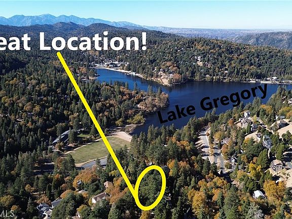 Fantastic lakeview lot featuring a woodsy setting with a great sense of privacy! Located near popular Lake Gregory with hiking trails,boating,fishing,kids play areas,two dog parks, entertainment and more! Approx. 7,280 SQ FT of gorgeous natural forest setting with large pines, oaks, cedars and fir trees all around. All utilities (water,sewer,natural gas, electric, phone, high speed internet, cable) are conveniently located at or near the county maintained street. Down sloping lot, ideal for a level entry home with serene panoramic lake and mountain views. No HOA or Mello Roos! Great opportunity for a contractor/builder or for a custom vacation rental/2nd home. Another well appointed lakeview home near Lake Gregory just sold recently for above $1 million dollars. As a short term rental that same home rented for around $1,000 to $2,000 per night! Vacation rentals/short term rentals are allowed with minimal San Bernardino County restrictions and required permit. OWNER MAY CARRY/FINANCE with a reasonable down payment! Don't miss this extraordinary lakeview lot located in the popular San Moritz area...make your offer today!