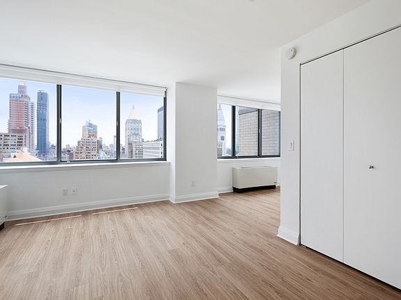Offering an array of studio, one-, and two-bedroom apartment homes with stainless steel appliances, granite countertops, wood flooring, and floor-to-ceiling windows with stunning views. This full-service building with a 24-hour concierge has a fully equipped fitness center, rooftop deck with spectacular panoramic views of the city skyline and Empire State Building, resident lounge with billiards room, and more.