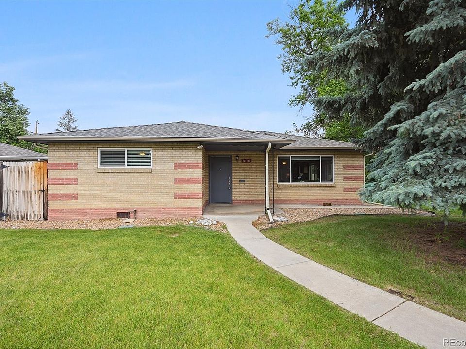 Welcome home! Spacious 3 bedroom, 2 bathroom brick ranch situated on a large corner lot. One level living featuring updated kitchen with stainless steel appliances and plenty of cabinet/counter space, dining area and cozy living room. Private master bedroom with ensuite bathroom. Two additional bedrooms and updated full bathroom. Oversized two car attached garage and driveway for off-street parking. Private fenced backyard with patio. Refinished hardwood floors. Newer roof, furnace, AC and several double pane windows. Close to RTD Lightrail station and easy access to 6th Ave, I-70, Downtown Denver, foothills and mountains. Hurry! You don't want to miss this opportunity!