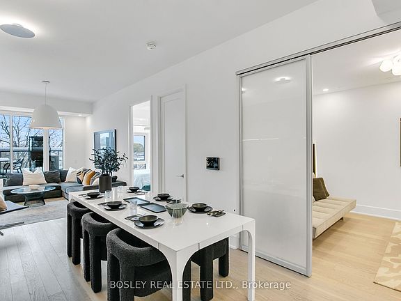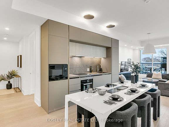 Experience the art of understated elegance at Nahid on Broadview, an intimate boutique residence in the heart of Playter Estates. Designed for those who value privacy, refinement, and timeless design, this exclusive building offers a rare sanctuary in one of Toronto's most coveted enclaves. This Furnished 2 Bed+Den, 2-Bath suite possesses a unique balance of quiet luxury, city-living, and design. The Developer's original interior layout was reconfigured by a private & exclusive designer, ensuring a harmonious flow, intimacy, and bespoke detailing. Refined finishes include: wide-plank hardwood oak floors, custom + solid 8-ft. core single and French-doors, and more. The Italian Muti kitchen is a masterpiece of both form and function, complemented by custom engineered countertops, fully integrated Miele appliances, touch-activated faucet, and cabinetry that blends beauty with utility. 9ft ceilings and expansive windows bathe the space in natural light, enhancing the serene atmosphere and highlighting the suite's luxury finishes. Smart fingerprint ID suite access, digital concierge, built-in security system, combined with advanced soundproofing and a limited number of suites ensure a secure, peaceful, and exclusive environment rarely found in urban living. Perfectly positioned: just steps from Broadview Subway Station and moments from The Danforth, Yorkville, Riverdale, and more, Suite 504 affords effortless access to many of Toronto's most vibrant neighbourhoods, as well as the city's unique and extensive ravine network, yet always welcomes you back to the quiet luxury of your private retreat. Come home to Suite 504: a statement of refined living for those who seek distinction without ostentation.