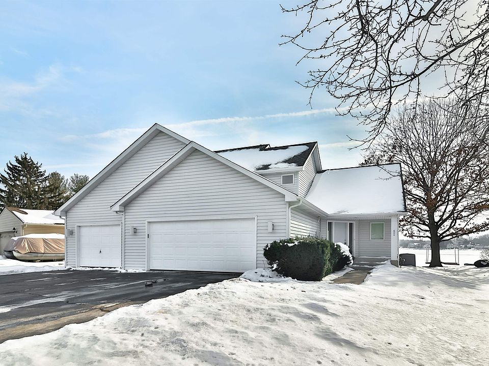 Check out this gorgeous, contemporary lakefront home sitting ideally in the middle of Candlewick Lake and offering fantastic, panoramic views. The open floor plan showcases soaring, vaulted ceilings above the undivided great room, kitchen & dining area. The abundance of lake facing windows compliments this openness, providing much light throughout the home. The 2 sided gas fireplace can be utilized in the great room and the 1st floor master bedroom suite. Relax while overlooking the lake in the 4 season Florida room, which is wrapped in windows and skylights. Step outside to enjoy the view from the deck off the Florida room or down at the dock. The upper level includes 2 spacious bedrooms with large closets and a full bath. First floor laundry/mud room. Convenient 1st floor half bath (new toilet & lighting). The large 3 car attached garage provides extra storage. New roof in 2021. The newer solar panels and Tesla charger make this an energy conscious home. Newer stove, microwave, dishwasher, sink & faucet. New luxury vinyl flooring throughout the home. Cabinets have been recently repainted. Stairway carpet is new. The gated community offers many amenities you are sure to enjoy: boating and fishing, outdoor pool and beach, playgrounds & dog park, golf course, clubhouse, rec center, tennis courts and more.