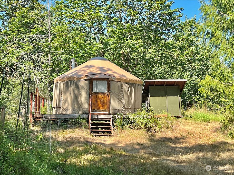 REDUCED - Yurt & Tiny Home on 2 parcels totaling 10 Acres. Located in gated community in Randle/Packwood area w/ deeded access to Cowlitz River & community-use of septic dump & water filling station. Yurt is 16' in diameter, wired for generator, heated by wood stove, & encompassed by recently stained wooden deck w/ shed for wood. Tiny House is 14x6, wired for generator, & has rain collection system. There's also a fire pit, slab w/ covered roof, shed, porta-potty, & two fenced pastures including garden area w/ apples, plums, herbs & veggies. Mostly level topography w/ many nature trails & mix of wooded & pasture areas. Frequent visitations from Elk. Prime weekend getaway or base camp - very private & peaceful. Owner financing considered.