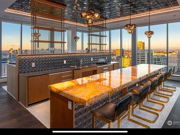 The two bedroom, two bath unit includes a personal parking space with electric charging station and a storage unit. Expand your living space further with fantastic amenities including a wellness center, co-working lounge with fireplace, flexible meeting spaces, gaming room, outdoor spaces at street level, and top floor club level with media room, dining lounge, wine bar, & two sprawling outdoor plazas overlooking Mt Rainier and Lake Union. Skyline views in all directions as well as impressive NW view directly from the condo!