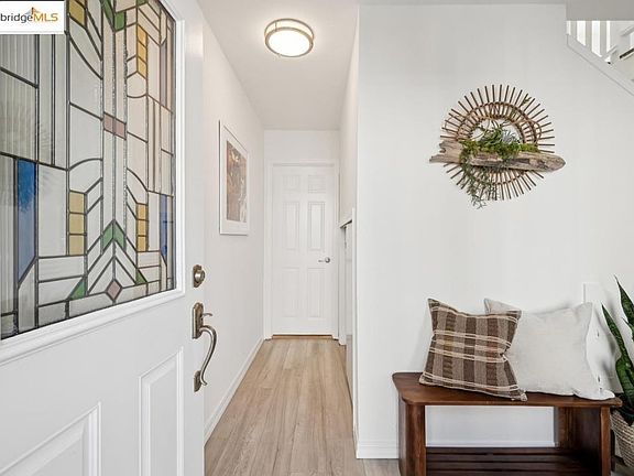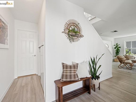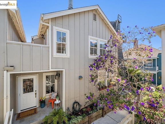 Location is everything—and at 800 Delaware, just one short block from Berkeley’s vibrant Fourth Street, you’re in the heart of it all. Quietly tucked away, this 1,192 sq ft 2+ bed, 1+ bath condo lets you ditch the car and embrace the neighborhood. A path framed by lush greenery leads to the sunlit unit, where the open floor plan welcomes you with dining and living rooms anchored by a gas fireplace. An updated kitchen, half bath with laundry, and abundant storage complete the downstairs. Upstairs, high ceilings add an airy, architectural vibe. Two bright bedrooms and an updated bath share the space with a third room, ideal for a home office, that opens to a balcony perfect for morning coffee. A deeded parking spot adds convenience, while the Transbay bus stop is just 2 blocks away, with BART and UC Berkeley a short bike ride. Step outside to Fourth Street’s eclectic mix of shops, boutiques, and dining, and immerse yourself in Berkeley’s dynamic lifestyle. A feast for the senses, this home blends convenience, charm, and opportunity—Live Berkeley, Live Vibrant!