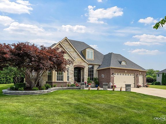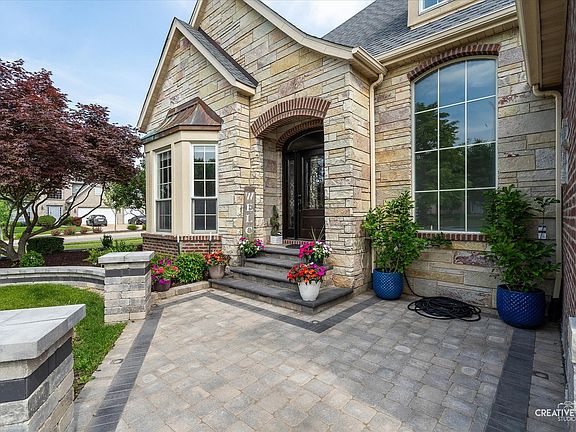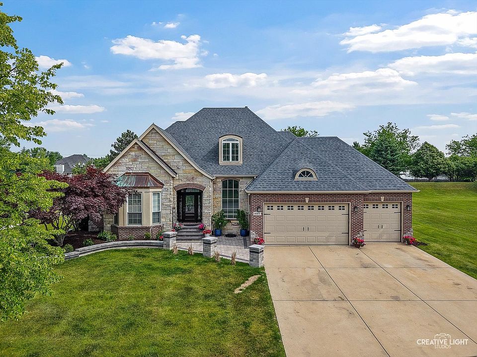 Welcome to your dream home in prestigious Kipling Estates, a pool and clubhouse community. This custom built 2-story home blends timeless charm with modern updates. From the grand 2-story foyer to the soaring 10' ceilings and gleaming hardwood and tile floors throughout (no carpet!), every detail is designed to impress. You'll fall in love from the moment you arrive with new landscaping, a new front door, and elegant new stone steps and brick paver patio setting the tone. Step inside to a dramatic cascading staircase accented by new iron pillars, and enjoy freshly painted rooms in neutral colors with crisp white trim and tasteful accent walls throughout. The spacious main floor features, a private den with glass French doors, a sun-filled dining room with a beautiful bay window, a gourmet eat-in kitchen with brand new white quartz countertops and new stainless steel appliances (2024), a warm and inviting family room with a modern refaced stone fireplace, huge mud/laundry room and a rare main-floor primary suite complete with a spa like bath and an expansive walk-in closet. On the second level, you'll find, three additional, spacious bedrooms, one with a private en-suite bath, two connected by a Jack-and-Jill bath and an oversized bonus room, perfect for a home theater, gym, or playroom. Other highlights include, 3-car garage, full unfinished basement with rough-in plumbing, corner lot just shy of half an acre and no direct back yard neighbors! New A/C (2023), new window treatments throughout, and newer roof. Enjoy the community clubhouse, pool, tennis courts, fitness center, and parks-all within the highly sought-after Minooka School District! The perfect home, in the perfect location where you can use the trails throughout the community to walk to the clubhouse with pool and workout facility, local parks with splash pads, or even the elementary school! The Shorewood community also hosts a town favorite called "Party in the Park" and summer events where every week a local band or movie is presented and the community gathers! This home truly has it all - location, luxury, and lifestyle.