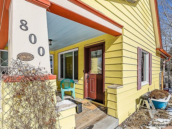 This charming 1890s bungalow sits on a corner lot in historic downtown Cheyenne, surrounded by lush trees, flowers, and shrubs. Just steps from local shops, restaurants, and events, it’s also a short walk to Holiday Park for lakeside strolls, basketball, or summer picnics. With 1,268 sq. ft., this home features 3 bedrooms, 1 bath, and a 1-car garage with an attached workshop. A private flagstone patio and fully fenced backyard offer a peaceful retreat. Enjoy morning coffee on the covered front porch or cozy up by the recently restored fireplace. Bonus features include a dual-flag flagpole to showcase both your team spirit and Wyoming pride. Whether as a primary residence or a potential Airbnb, this home offers timeless charm and a prime location in the heart of Cheyenne.