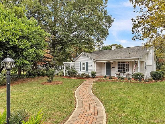 Welcome to this beautifully renovated 3-bedroom, 2-bathroom cottage-style home in the heart of Easley. Step back in time when neighbors strolled up the winding brick walkway to visit on the welcoming front porch. As they chatted about the latest news, the aroma of home-cooked meals filled the air, and the sound of footsteps echoed on the original hardwood floors. Imagine living in a modern version of this memory-filled home, with the same front porch charm, but a brand-new kitchen that still carries the warmth of 1968 through white custom cabinetry, granite countertops, stainless steel appliances & a deep stainless steel sink. The addition of a convenient walk-in laundry room with tiled flooring adds valuable space for any owner. The Dining Room has been beautifully redesigned to seamlessly connect with the Living Room and the Kitchen, featuring exquisite moldings and ample space for family gatherings. The Living Room's brick fireplace, now enhanced with gas logs and a tiled hearth, remains the focal point, allowing natural light to grace the beautiful original hardwood floors through the picture window. The extensive remodel, from sub-flooring to plumbing and wiring updates, new tilt-out windows, and fresh paint inside and out, was carefully executed to preserve the charm that made this home special to the previous owners. The original door trim was thoughtfully retained and added to the widened door openings, enhancing the overall room space. Both bathrooms were meticulously redesigned, with the hall bath featuring penny tile, quartz countertops, updated lighting, hardware, and a stunning new vanity. The Primary Bedroom boasts two closets and an amazing new full bath with a custom tiled walk-in shower, new tile flooring, and a beautiful vanity addition. The architectural details, including thick baseboards and wide window and door trim, add to the home's overall charm, showcasing top-tier craftsmanship and the use of high-quality materials. Every detail of the renovation was executed with precision, ensuring timelessness and durability. This residence boasts distinctive outdoor areas, including a charming potting shed that could double as a potential art studio, with a scenic view of an extra secluded patio. The original garage Carriage House serves as an ideal location for storing outdoor equipment. The outdoor living space provides a serene atmosphere for unwinding and effortless entertaining, making it the perfect spot for the most enjoyable gatherings with friends and family. Nestled in a charming neighborhood within walking distance to downtown Easley, this home radiates a quaint, cheerful, and secret garden vibe, perfect for those who cherish privacy, comfort, and easy maintenance. It is a true dream, featuring breathtaking outdoor areas and meticulous interior craftsmanship that bring you back to the era when homes were constructed with the utmost quality, and friendly neighborly visits were a cherished tradition.This one is not to be missed!