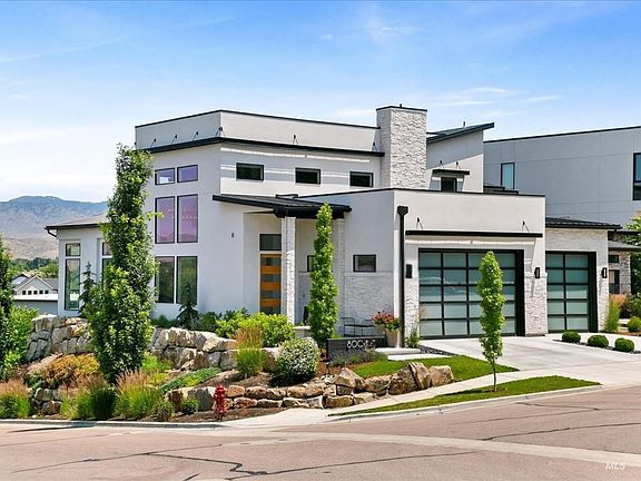 Experience elevated living in this striking modern masterpiece, ideally located in the prestigious gated community of Lakemoor. Built for entertaining and a lock and leave lifestyle, every inch of this home has been meticulously curated with high-end finishes and statement design. Soaring ceilings and expansive floor-to-ceiling windows flood the home with natural light while framing panoramic views of Eagle and the Boise Foothills. The gourmet kitchen is a showstopper -- featuring rift sawn white oak custom cabinetry, sleek quartz countertops, two expansive islands, premium appliance package and coffee bar w/ beverage & wine refrigerator. Additional features include wide-plank white oak hardwood flooring, Restoration Hardware lighting, automated window treatments, epoxy garage floors and cabinets and Timber Tech decking. Lakemoor residents enjoy resort-style amenities including pools, sports courts, walking trails and greenbelt access—all just minutes from Downtown Eagle, restaurants & entertainment.