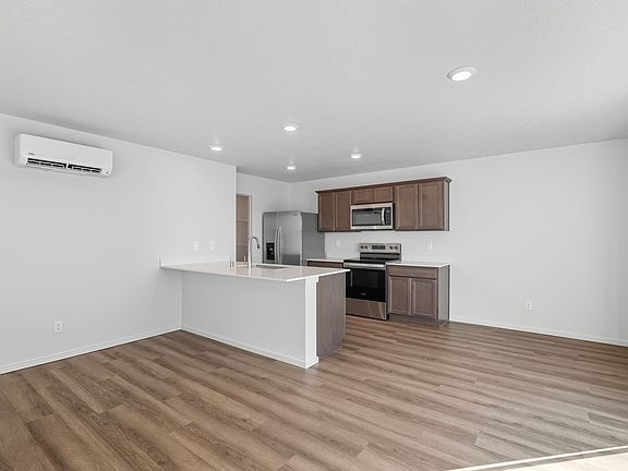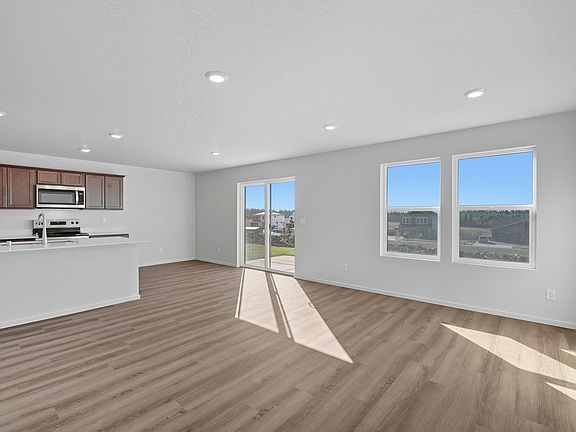 This thoughtfully designed single-level home features 3 bedrooms and 2 bathrooms. The open-concept layout seamlessly connects the living room, dining area, and kitchen, creating an inviting atmosphere perfect for both everyday living and entertaining. The kitchen features an island, a spacious walk-in pantry, and stainless-steel appliances, including a dishwasher, electric range, and microwave. The primary bedroom is tucked away at the back of the home for added privacy and serves as a serene retreat, complete with an en suite bathroom and a walk-in closet. Two additional bedrooms are located at the front of the home and share a full bathroom, offering versatility and flexibility. Enjoy privacy and views right out your back door!