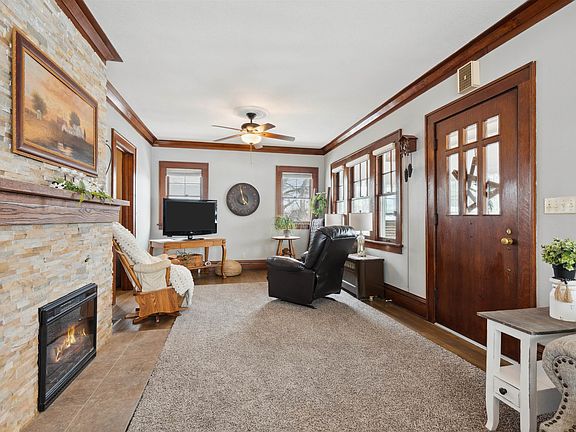 Spacious 4-Bedroom Home on a Corner Lot in Manchester Quick possession is available, so you can move right in and start enjoying this character-filled 1½-story home. The enclosed front porch sets the tone, leading to a cozy living room with a fireplace and a spacious dining area that’s perfect for entertaining. The large kitchen offers plenty of cabinetry and workspace for everyday living. The main floor also includes an updated ¾ bath with a tiled shower, one bedroom, and a versatile flex room, great for a home office, guest room, or hobby space. You’ll love the charm throughout, with hardwood floors, detailed woodwork, and leaded-glass doors adding to the home’s appeal. Upstairs features two roomy bedrooms, a full bath, and a bonus room that adapts easily to your needs. The lower level offers a recreation area, half bath, laundry, and ample storage. Outside, you’ll appreciate the fenced yard, covered walkway, and convenient garage with carport. Whether you’re searching for a new home or an investment property, this Manchester gem offers space, character, and flexibility. Contact your agent today to set up a private showing and make this home yours!