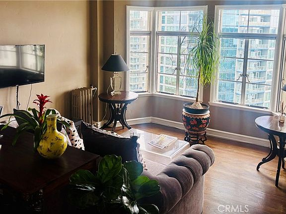 Studio More Like a Junior One Bedroom with Sleeping Alcove Added! Exquisite Historic Perfection!! The Iconic Villa Riviera, Long Beach's most treasured high-rise sits on the seaside. Step inside this well-appointed unit and you might imagine you are in Paris or New York. The building with the patina cooper roof and the Gargoyles - can't miss it! This approximate 580 sq ft flat offers all the trappings of old world charm and classic design. Starting with nearly 12 ft Ceilings, Hardwood Floors, Plaster Walls with coved ceilings, French mullion window casements and Bay Window. This unit oozes with elegance. The main room is large enough to have two separate areas, one for all your bedroom suite furnishings and another for living space. A full dining area is comfortable to seat six and the galley kitchen shows off period cabinets and a vintage stove (they cook and bake the best of the best). Large dressing suite and beyond abundant closets and storage. The bath has been updated but still includes the Sloan commode with all the beautiful chrome, pedestal sink, cast iron tub with shower overhead. Updated with Carrera marble and period appropriate finishes. Unit could easily be converted to a junior ONE Bedroom. The HOA fee includes all the utilities including gas, electrical, water, hot water, heat, cable TV and yes internet. Plus this unit is on the benefit of The Mills Act which saves the new owner tremendous savings in property taxes which is transferable with a sale. Savings on Mills Act is $3125 annually