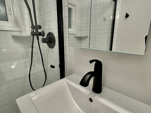 Available! Welcome to this second floor cape cod style 2 bedroom 2 bathroom apartment. It features a living room which opens up to the full kitchen and breakfast nook. There is a modest sized bedroom with its own private full bathroom and a second cozy sized bedroom near the second bathroom. Plenty of natural light, lots of off-street parking, a private entrance, laundry included, a large amount of storage and additional storage in basement. Recently renovated bathrooms and kitchen, refinished oak hardwood floors, paint, and new lighting.