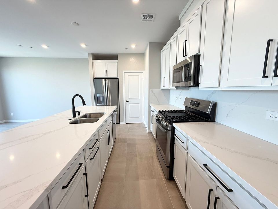 Featuring designer-selected flooring throughout, two-tone interior paint, and an open, airy layout, the chef's kitchen boasts quartz countertops, stainless steel appliances, and plenty of storage. All bathrooms feature beautiful raised-height vanities.