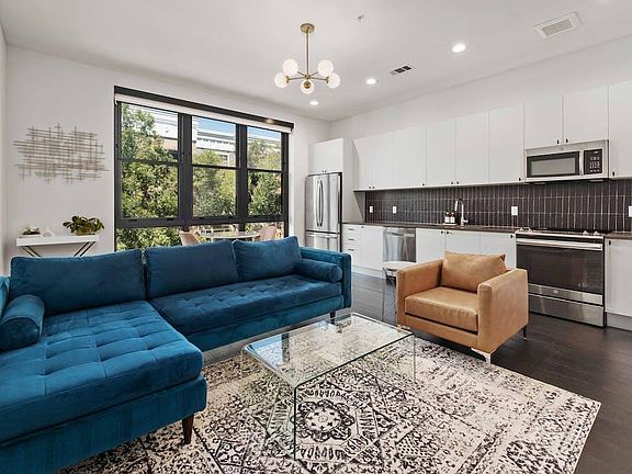 The perfect 1 bedroom + office/guest bedroom unit in the heart of Eastside & downtown. Walk to Whole Foods and Target on E 5th, tons of restaurants and coffee shops and easy access to downtown and UT. This condo has an open-concept kitchen & living room with floor-to-ceiling windows overlooking a beautiful tree-lined quiet street. This unit also has a much-needed office/bonus room when working from home or a spare bedroom for guests. A reserved parking space in the secured parking garage. Amenities are amazing at Tyndall, including 24-hour Concierge, resort-like pool and wet deck with views of the downtown skyline, state-of-the-art fitness center, multiple community workspaces, meeting rooms, lounges, outdoor kitchen, dog run, and more. Must see!