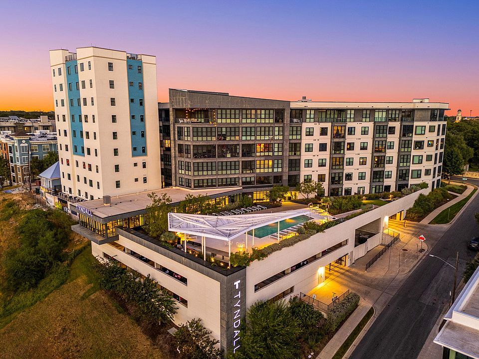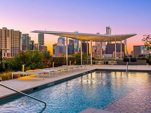 Experience stylish downtown living in this stunning 2-bedroom condo at The Tyndall Residence. Flooded with natural light and featuring floor-to-ceiling windows, 10-foot ceilings, and 8-foot doors throughout, this home offers breathtaking views of the Austin skyline and the pool, with nightly sunsets to enjoy from the comfort of your own space. The building feels like a private retreat, complete with a rooftop deck perfect for relaxing or entertaining, a large pool, a full-service gym, conference and meeting rooms, and a dog run. A friendly 24/7 concierge team ensures security and convenience, while two designated garage parking spots, bike storage, and additional storage rooms provide ease and practicality. Located in the historic Robertson Hill, The Tyndall offers unbeatable proximity to the best of Austin. You’re just a 6-minute walk to Whole Foods and Target, and a 10-minute stroll to the vibrant restaurants, bars, and cultural attractions along East 6th and 11th Streets and the Red River Cultural District. With all the conveniences of downtown living and the feel of a private oasis, this move-in-ready condo combines luxury, comfort, and style.