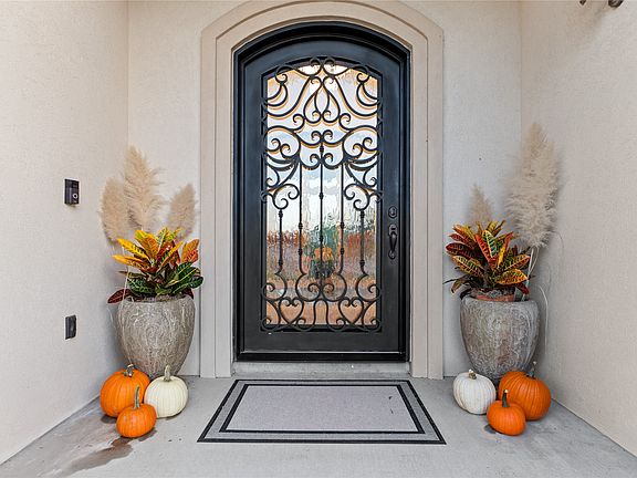 Imagine arriving at this elegant residence in the prestigious Buffalo Creek Country Club Estates, greeted by a semi-circular drive and a striking scrollwork iron entry door. Step inside to the first living area, where a wall of windows frames the sparkling pool and fills the home with natural light.