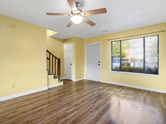Make yourself at home at this beautiful townhome in the heart of downtown Durham. With views of the American Tobacco trail & the downtown skyline, this gem is two minutes from the DPAC (Durham Performing Arts Center), Durham Bulls Stadium and the amazing eateries that downtown Durham has to offer. This lovely townhome boasts of new LVP plank floors, a remodeled kitchen with new butcher block countertops, new sink, new appliances, and completely remodeled.
