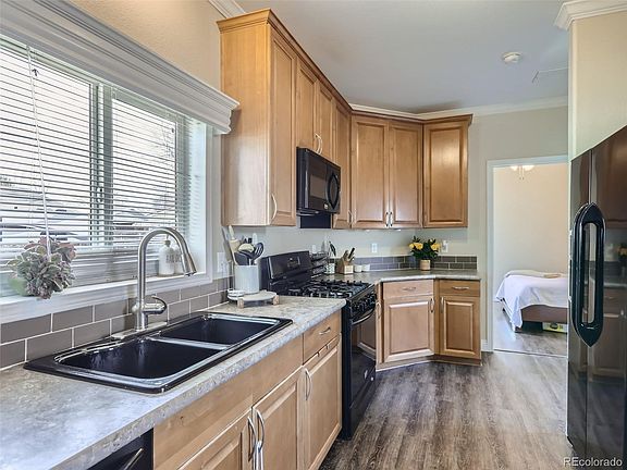 Welcome home to this well maintained, beautiful manufactured home. You'll notice as soon as you walk through the front door, this is not your typical manufactured home. There are textured walls, rounded corners, and impressive trim work. The living room has a coffered ceiling, ceiling fan, and a built-in, decorative showcase wall. The open floor plan to the kitchen makes entertaining easy. Make sure to notice the eating area with the built-in hutch, allowing for more storage and decoration. The kitchen has ample storage space with 42 inch cabinets. All of the appliances are included and the oven has a gas cook-top. The flooring is NEW! The kitchen is adjacent to both the primary bedroom and the laundry room. The primary bedroom has a private bathroom. Make sure, when you look inside the closet, look behind the closet door after it is swung open. The closet is much bigger than it first appears. The laundry room includes the washer and dryer and gives you access to the backyard. This entrance currently leads to the dog run, but there is a second entrance to the backyard through the detached, single car garage. The garage entrance is through a sliding glass door installed by the seller. This leads to a backyard deck, used by the current owners as a place to entertain. The garage also has new paint and a new front garage door. Back inside your home, there are two more bedrooms and a second full bathroom. New flooring was just installed in the entryway and hallway. You're going to love it here.