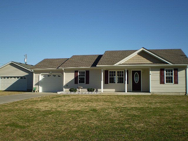 Georgous home with three bedrooms, two baths, open living, dining & kitchen combination with attached one car garage and detached garage. Enjoy the country setting from your front porch or back patio. Like new condition is how you will fine this home. Gas logs in living room, blinds, storm doors, gutters and a ten year warranty for termite protection from Pestar. Weeksville School district. Near Saw Mill Park for boaters & fishermen.