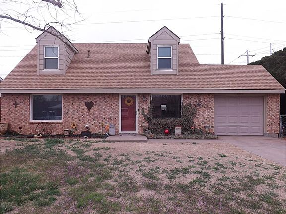 Cute brick 1 1/2 story home. Located on corner lot with some landscaping. Two bedrooms with one bath down stairs. Two bedrooms upstairs with a bath. One car garage, inside utility room, Central heat /air unit is about 4 years old, Roof was put on three years ago, Windows have all been updated. Storm doors, covered patio, chained link fenced backyard. Gas cookstove & dishwasher stay.