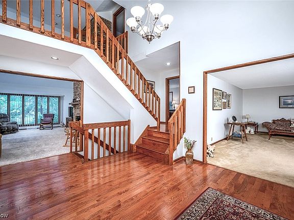 Welcome to this exquisite luxury home located in serene Hidden Lakes Development, Howland. You will be captivated by the tranquil surroundings & the brick walkway leading to the entry. You will be greeted by the welcoming, foyer w rich hardwood flooring. The 1st floor boasts a master suite, your personal retreat, with a private deck overlooking the picturesque lake. The master bath has been updated with dble. sinks, sep. tub & shower. The main level incl. a light filled living room perfect for entertaining. The spacious family room showcases a beautiful fireplace & offers captivating views of the lake. The retractable vaulted ceiling exposes skylights, creating an airy, open atmosphere. Additionally, there is a formal dining room for hosting elegant dinners. The open kitchen is a chef's dream w an island, all appliances & an eating area. A huge 1st floor laundry room w sink, cabinets, washer/dryer & a half bath add to the home's functionality. Anenclosed patio room w new windows, perfect for enjoying the outdoors in any weather. The 2nd level reveals 4 spacious bedrooms each offering plentiful closet/storage space. All bathrooms are updated. The lower level features a rec room w a bar, built-in cabinets, a half bath, theater/game room to entertain or unwind. Situated on 2 peaceful acres, this property offers privacy & tranquility. Known for it's natural beauty, this is an ideal place to call home. Don't miss this opportunity to experience all this property has to offer.