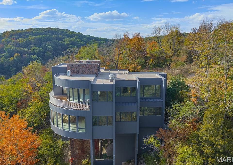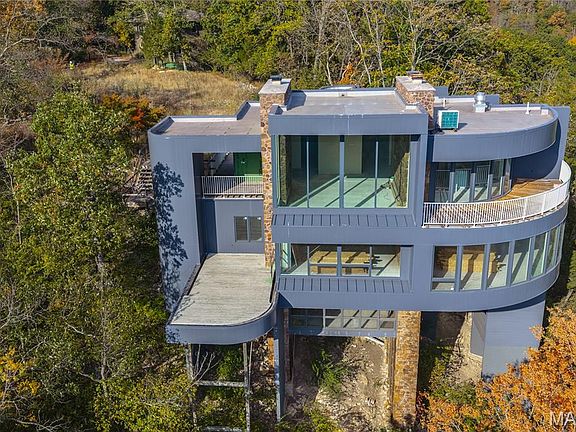 Welcome to a true Ballwin/St. Louis County unicorn! Bring your creative vision to this large, diamond-in-the-rough contemporary property, designed to optimize its million-dollar views overlooking Castlewood State Park. This sale includes 2 structures and 3 separate plots of land totaling 14.61 acres. Tucked away at the furthermost end of the subdivision, and zoned non-urban, this opportunity offers privacy, breathtaking scenery, and unlimited potential. The main structure is approximately 4557 square feet across 3 levels and includes two fireplaces (one gas and one wood-burning), a commercial fire-irrigation system, and an elevator.
