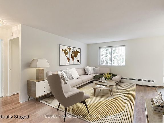 Amazing 1-bedroom, 1-bathroom co-op with large living room, formal dining, and eat-in kitchen. 704 sqft! Private balcony with tranquil views. Parking spots available for rent! Laminate flooring throughout. Loads of closet space + storage. Maintenance fees include property taxes, locker, all utilities + cable T.V. Perfect for downsizers or first-time buyers. Very well-maintained building! Great location - walk to shopping, Eglinton LRT and Kennedy Station transit hub. Don't miss this one. ** Photos have been virtually staged**
