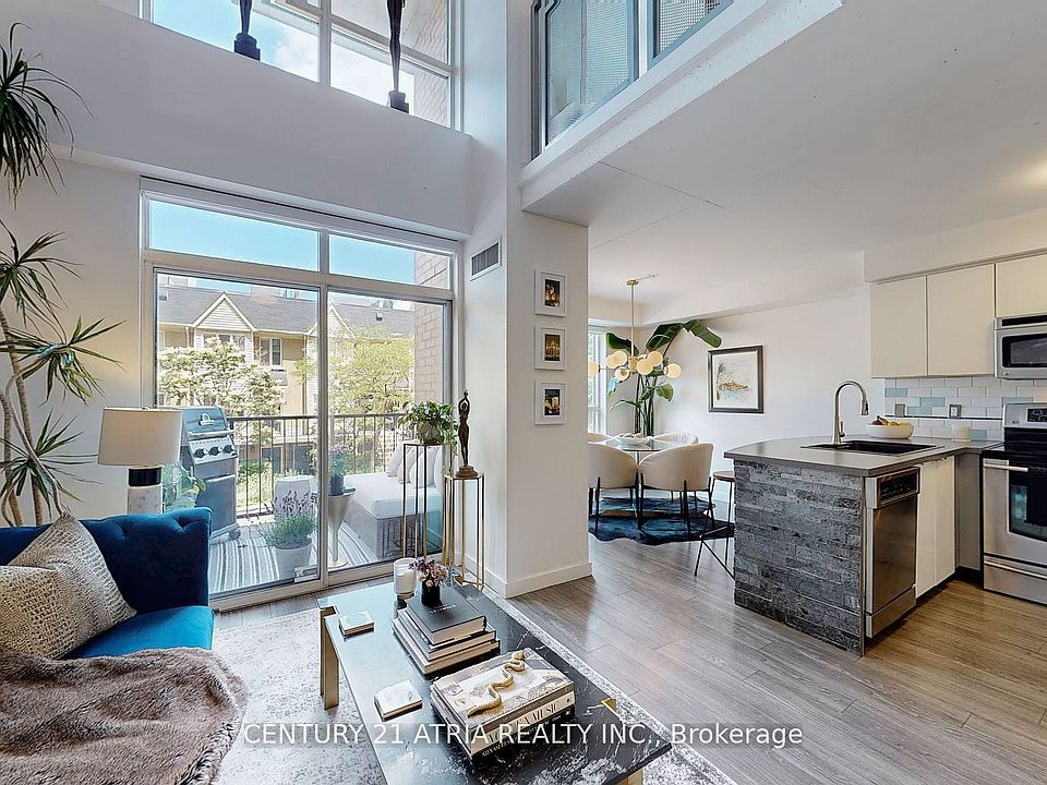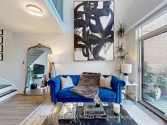 Welcome To The Kings Lofts! This stylish 790 Sqft 1 Bed + Den (Home Office) w/ 2 Bath, 2-Storey Loft is located in the vibrant King St W neighbourhood. The unit features a functional and spacious layout with soaring 17 ft ceilings with floor-to-ceiling windows, which flood the space with an abundance of natural light. Enjoy a separate living and dining area, ideal for both relaxing and entertaining guests. The kitchen boasts full-size stainless steel appliances, a breakfast bar and a dining area, making it perfect for everyday living. A main floor 2 piece bathroom adds extra convenience for guests or work from home days. Upstairs, the spacious open-concept second floor offers a large primary bedroom complete with a 4 piece bath, double closet, oversized window and a separate generous-sized den, perfect for a dedicated home office or creative space. Theres ample in-unit storage, including a built-in pull-out entertainment unit with hidden storage under the stairs. Step out onto your tranquil private balcony a perfect spot to unwind in the summer (yes, BBQs are allowed!) 1 underground parking space and 2 bike racks are included. Triple A location in the heart of King St W, you're steps to top-rated restaurants, amazing nightlife, parks, TTC, shopping, grocery stores and much more. Building amenities include a full gym, party/meeting room, sauna, outdoor terrace, and plenty of visitor parking. Maintenance fees cover all utilities!