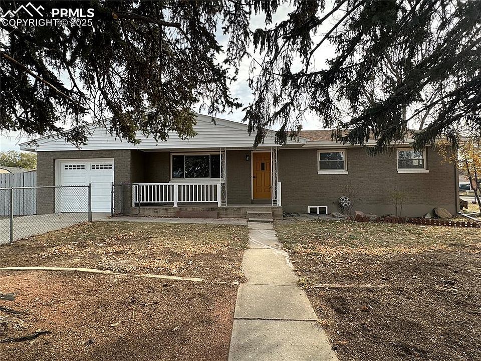 Welcome to this beautifully updated 5-bedroom, 2-bath ranch-style home located on a spacious corner lot in Fountain’s highly sought-after Rangeview community. With timeless brick exterior and modern interior upgrades, this move-in-ready home offers comfort, style, and functionality throughout. The main level features refinished natural wood flooring in the living room and bedrooms, along with a fully remodeled galley kitchen showcasing new stainless steel appliances, quartz countertops, tile backsplash, recessed lighting, and soft gray cabinetry with updated trimwork. The main-level bathroom has been renovated with marble-style tile and modern fixtures for a clean, elevated look. The finished basement expands your living space with a large family room, two additional bedrooms, a fully updated bathroom, laundry room, and a dedicated storage room. All basement windows have been upgraded to energy-efficient vinyl, adding comfort and long-term value. Additional improvements include fresh interior and exterior paint, updated light and plumbing fixtures throughout, and new recessed lighting that enhances the kitchen and key living spaces. A covered front porch and attached garage complete the package. Located near schools, parks, shopping, and just minutes from Fort Carson, this home offers incredible value in a prime Fountain location. Don’t miss your opportunity to own this thoughtfully renovated home—schedule your showing today.