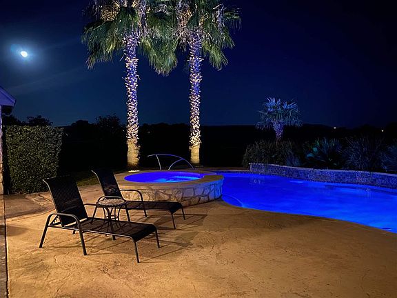 800 Legends Parkway is a custom built home with abounding features inside and out. Hosting 3 bedrooms, 3 full baths and 1 half bath off the living, PLUS AN OFFICE! A 3 car garage with a side entry and apartment above. The apartment has a full bath and wall heating/cooling unit. Sitting on the 0.87 acres there is an additional golf cart storage shed, a number of fruit and pecan trees matched with a wifi controlled pool and hot tub that hosts on-demand lighting, jets and waterfall features for the pool. It gets better! This single-level, custom home backs to the number 2 tee box of The Legends golf course and the views are breathtaking. Views of Packsaddle Mountain, herds of white-tail deer and other wildlife will have you living in paradise. Have I mentioned the proximity to the lake? You can see the lake from the kitchen window and the marina is only moments away. Call your local realtor today and view this home before it's gone! This is your dream home!