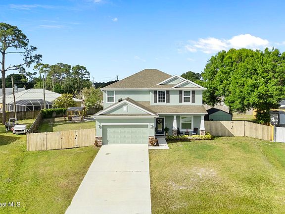 This Beautiful 5 Bedroom + LOFT, 3.5 Bath, 2 Car Garage Custom Home sits on .33 Acres lined w/ a Full Privacy Fence decorated w/ Solar Lights. The Paver Pathways lead to a semi-above ground, sparkling updated Pool w/ a wrap around Deck for sunning or relax under the Pergola, Screened Lanai & Front Porch. Enjoy the evening by the fire pit & a Large Shed is provided for storage. The Entertainment Space continues inside w/ special design touches; White 42''Cabinetry, Quartz Countertops, Stainless Steel Name Brand Appliances, Wood Tile thru out Main Areas, Living Rm Accent Wall, Custom Bathroom Tile w/ Double Vanities, High-End Ceiling Fans, Pendant Lighting & Exterior Stone & Shutter Accents. This Multi Generational Layout offers a downstairs Primary Suite & separate laundry rm. New Construction Features Minus the HOA & CDD Fees on City Water! Close to schools, parks, & 95!
