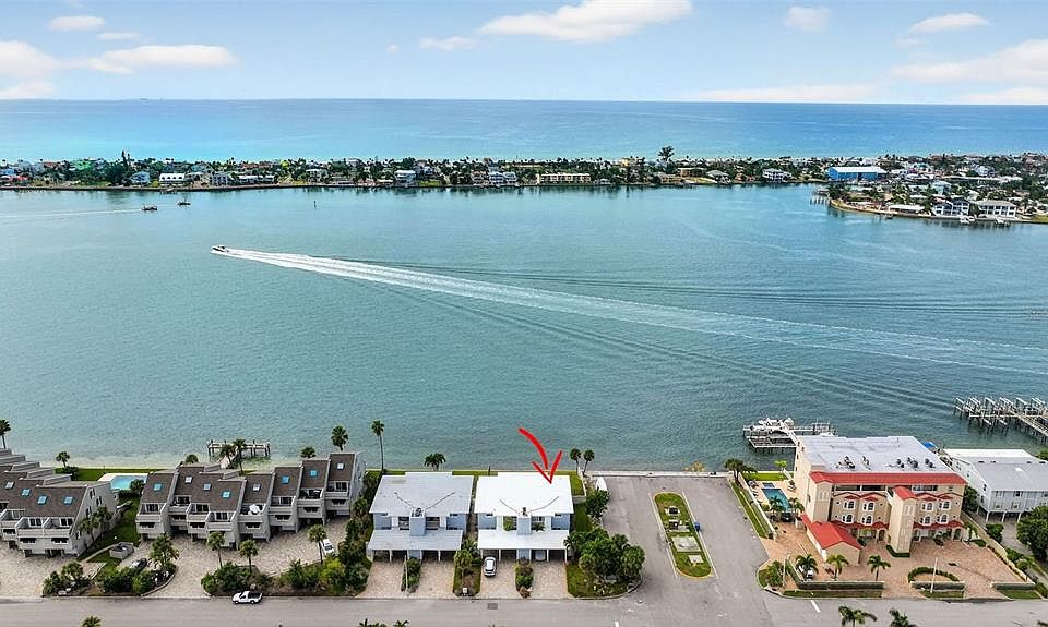 Exceptional Top-Floor Condo with Panoramic Water Views. Discover this truly one-of-a-kind, nearly 2,000 sq. ft. residence overlooking the Pass-A-Grille channel. Completely renovated with thoughtful upgrades throughout, this spacious home blends luxury, comfort, and peace of mind. Step into a bright open layout designed for both entertaining and everyday living. The chef’s kitchen features soft-close cabinetry, granite counters, and GE appliances with transferable warranty. Enjoy multiple living and dining areas, a spacious laundry room, and a flexible den/office space. The home offers three full en-suite bedrooms, including a newly renovated bathroom in the second primary bedroom, plus generous walk-in closets. Open your sliding glass doors to a screened lanai and take in endless views of dolphins, stingrays, and passing boats. The inviting outdoor space creates the perfect setting for relaxation or hosting family and friends. New electrical panel (2020), on-demand water heater (2021), dual-zone A/C systems (2020 & 2024), new carpet (2023), travertine flooring throughout, hurricane-rated windows & doors, new screens (2024), newly reinforced spiral staircase (2025) for direct pool access. This well-maintained community has invested in major updates: exterior paint (2025), new roofs on south building (2025) & north building (2019), pool resurfaced & pavers sealed (2022), Lanai replaced with hurricane reinforcement (2025), professional tree service (2025), and landscaping improvements coming soon. Additional perks include two under-roof dedicated parking spots, two storage closets on the second floor, and condo fees have remained stable for over two years. This top-floor sanctuary combines modern upgrades, breathtaking views, and resort-style amenities in a community that continues to invest in its future. Bonus: Seller will cover 6 months of condo fees with an acceptable offer closing by Jan. 1, 2026. Don’t miss this rare opportunity for luxury waterfront living!