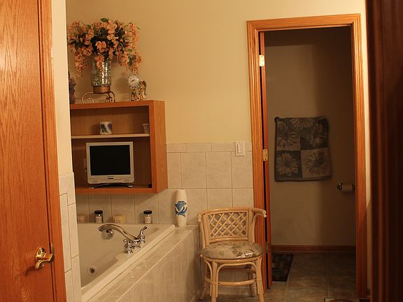 Lovely Custom Built Home in a riverside community complete with its own dock. Elegant soffits adorn the foyer and master baths complete with decorative silk plants. Large eat in kitchen with breakfast nook, computer desk and island, plus large additional space for gatherings. Main floor laundry, ½ bath, formal dining room and large family room round out the first floor. Second floor has four large bedrooms master bath with whirlpool tub, additional full bath and lots of large closets. Full finished basement boasts a full bar, and lots of room for entertaining. This is a steal for the price. Come and see this beauty with all its extras.