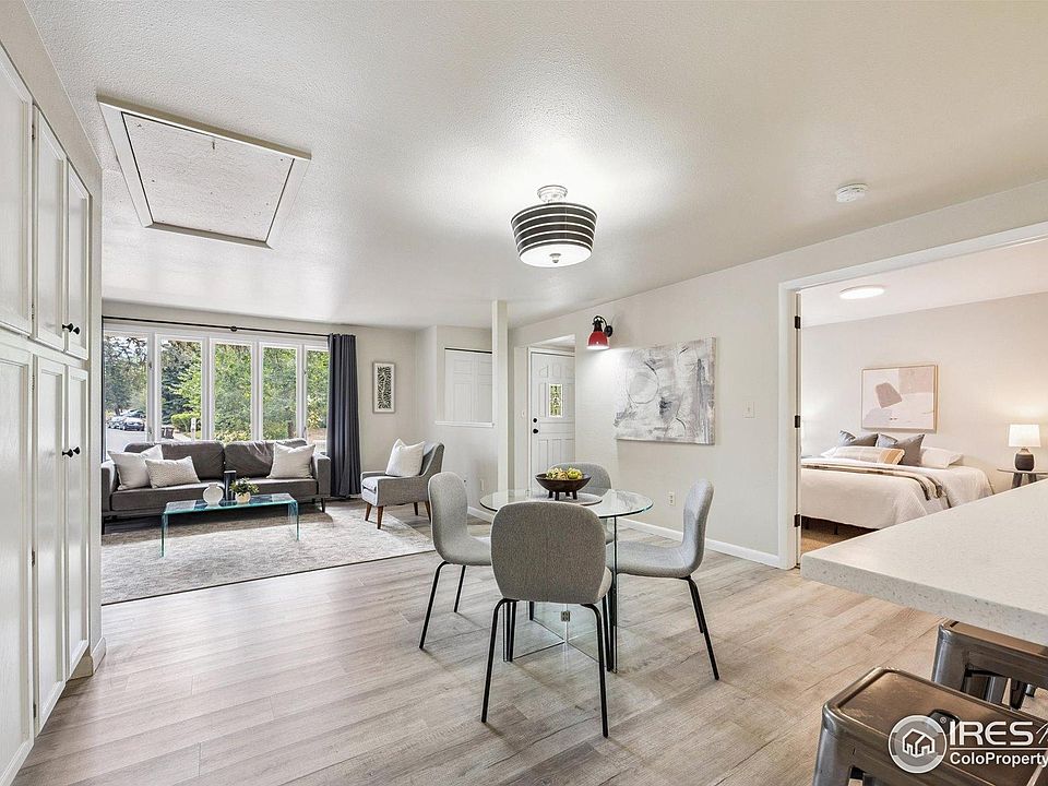 This one-level home near CU Boulder is turn-key, ready to move in and offers easy living in a great location. The layout is open and bright, with west-facing windows in the living room that look out toward the Flatirons. The kitchen has lots of natural light, stainless appliances, a huge walk-in pantry, and connects nicely to the main living space. You'll find refreshed bathrooms, low-maintenance laminate flooring throughout, and a brand-new stove. There's also a new refrigerator in the garage that comes with the house. The front and back decks were recently painted, and there's a hot tub included, too - perfect for relaxing after a long day. The yard has been professionally xeriscaped - amazing for folks who want low maintenance and low water bills! Whether you're looking for a home close to campus, a rental opportunity, or just a place with good space and great views, this place is cute as can be!