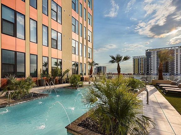 - Exterior features: 10-Foot Ceilings, Bicycle storage, Custom Cabinetry, Internet included in rent, On-Site Maintenance, Quartz Countertops, Rooftop Deck, Stainless-Steel, Energy-Efficient Appliances, TV Lounge, Tile Backsplash, Weekly Yoga Classes, Wood Inspired Flooring