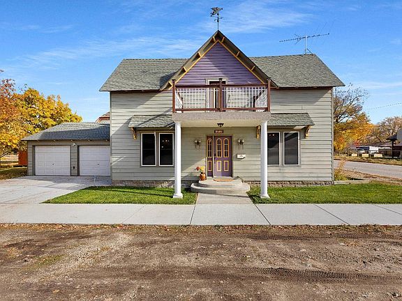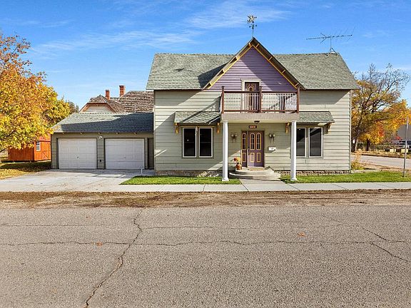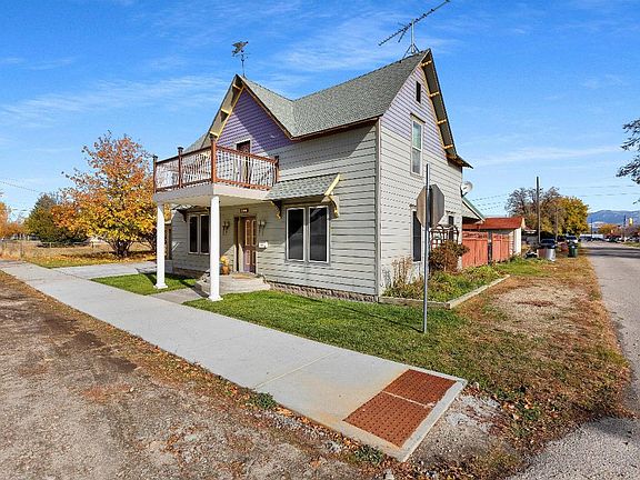 Three Bedroom, two-bathroom home with attached 2 car garage conveniently located just a few blocks from vibrant downtown Hamilton shopping, restaurants, medical services and Bitterroot River access. The charming exterior leads you to a great front entrance directing you into custom woodwork, stained glass transom windows and historic beauty of the early 1900's. The home has been preserved yet updated with modern touches and conveniences such as the heating system, lighting, appliances, windows and cement/hardy board siding. The kitchen has granite countertops, gas range, beautiful cherry cabinetry and marble mosaic & tile backsplash. Main level includes dining area, living room, additional room for possible office or bedroom with patio entrance Main floor full bathroom and a spacious mudroom/laundry leads to a fenced backyard with covered patio. Entrance to patio through mudroom also accesses the attached oversized double garage; convenient for unloading groceries and has an insulated heated storage room for paints and stock items that is sided with cedar shiplap. Additional storage in attic is accessed by a drop-down stairway. From main level follow the stunning stairway that divides the upstairs landing into two separate wings. The primary bedroom has an attached bathroom and walk-in closet. Two additional bedrooms designed with a touch of pine 'shiplap' round out the upstairs living area. Enjoy Bitterroot Mountain Views from your private balcony! Underground sprinklers and an additional insulated storage shed are included in the many amenities offered with this property. This one is not to be missed! Call Mandy Snook 406.360.1057 or your real estate professional.
