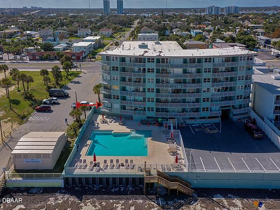 Welcome to ocean breezes at the Daytona Beach Club. This Oceanfront true one bedroom end unit offers coastal convenience and stunning views in a prime location just steps from the sand. STR - Short term rental Opportunity. Step out onto the balcony where you can relax with your morning coffee or evening cocktail while enjoying the refreshing ocean breeze. The unit features neutral tile flooring throughout and comes fully furnished so you can start enjoying the beach life right away. The space-saving kitchenette is ideal for relaxed beachside living. After a day of sun-soaked adventures, retreat to the sparkling oceanside pool to unwind and rejuvenate. This 117 unit, 6 story condominium building has a new roof (2023) and a new seawall, pool, and outdoor area. You will never be bored when you are so close to the Daytona Lagoon Water Park, Main Street Pier & Boardwalk, shopping, restaurants, entertainment and so much more...Continued... In this coastal haven, each day unfolds as a new opportunity for relaxation, exploration and indulgence. All information recorded in the MLS is intended to be accurate but cannot be