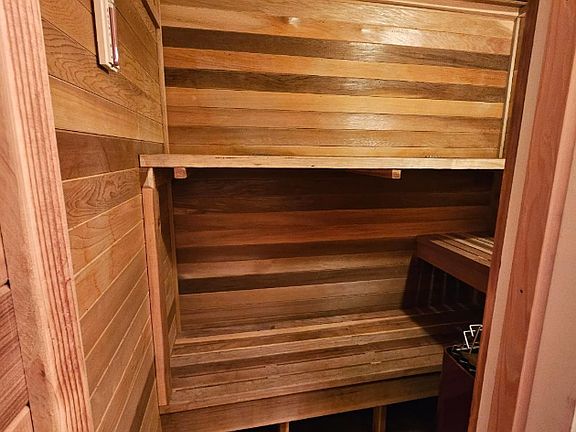 Great home with small town vibe and fantastic views. Main living area has an open floor plan with everything you need on one floor. Lower level has two bedrooms, 3/4 bath, kitchen, washer dryer and sauna, and direct outside entry. This area can be rented out.