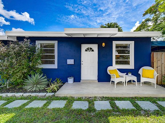 Welcome home to historic OLD POMPANO! This corner lot home features three bedrooms, two full updated bathrooms, central AC 2020 and newer roof. Freshly painted on both exterior and interior, this move in ready gem is an incredible opportunity with no HOA. Vinyl floors and baseboards throughout boasting high white wood beamed ceilings streaming an abundance of natural light in each room. French doors leading out to your backyard paradise under a covered awning. Huge fenced in backyard with double gates give access to park your boat /RV. Master suite offers a remodeled bathroom and a door leading out to your own private fenced in backyard. This room could even be rented out as a separate unit. Enjoy the historic charm of the Sample-McDougald House with parks and beaches just minutes away. Double your investment as home next door on corner lot is also for sale (810 NE 3rd Ave) see RX-10915312