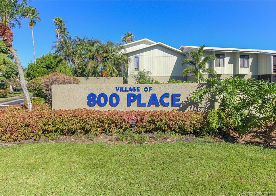 Ground level condo now available in the amenity filled Village of 800 Place courtyard condos. Enjoy the beautiful views on your private screened in patio. This 1 bed/1bath has been freshly painted with newer (2021 stainless steel appliances and AC). Tile flooring throughout and no stairs. Move in Ready! Beautifully landscaped, this tropical community features no age restrictions and offers an abundance of amenities such as tennis, clubhouse, basketball, and refreshing community pool. Less than 1.5 miles from downtown Stuart, close to beaches, dining, shopping, and more.