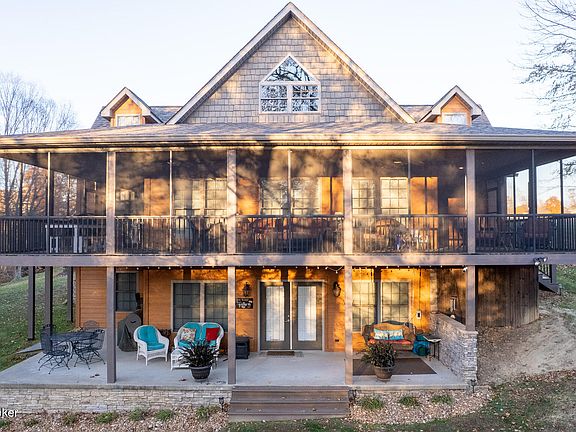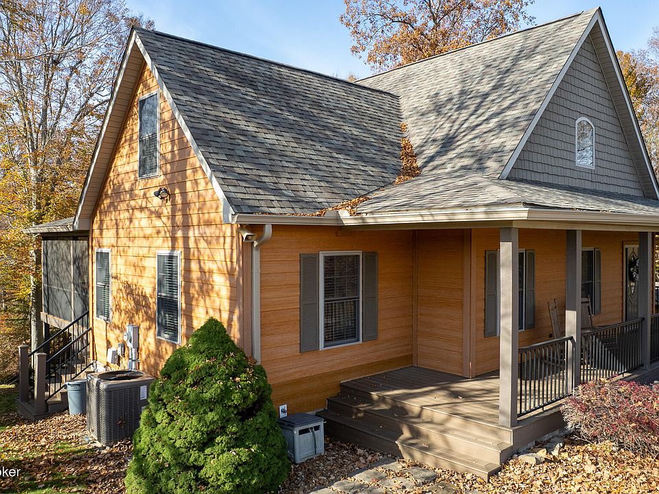 Discover the perfect blend of charm, comfort, and convenience with this Craftsman-style lakefront home on Lot 9 of Patriots Landing. Nestled along the scenic shores of Rough River Lake, this property offers everything you've been searching for: breathtaking views, direct lake access, and even the option for a turn-key purchase. Recently updated with newer roof, decking and HVAC system, making this home nearly maintenance-free, giving more time to enjoy lake life. Located just minutes from the State Resort Park and Marina you'll have easy access to all the fun the lake has to offer. On this channel, enjoy big water year-round, perfect for boating, fishing, and relaxing. This is more than a home—it's a lifestyle. Don't miss your chance to own a truly special piece of Rough River Lake! Enter the front door of the home and you see the soaring great room ceiling with wood beams and the LAKE! An open-concept floor plan means the chef can be part of the fun and the conversation! Meals on the screen porch are a breeze!