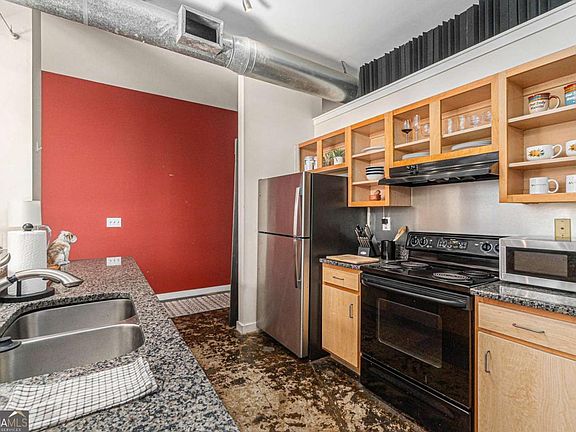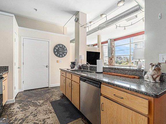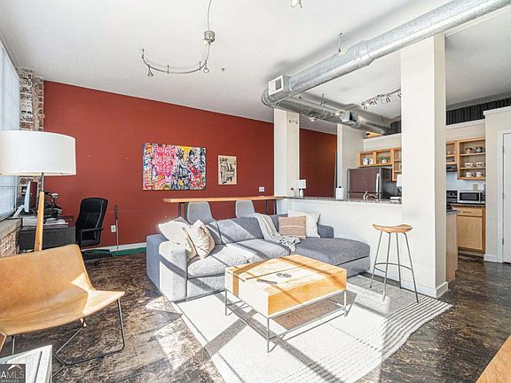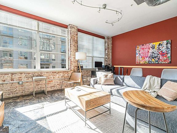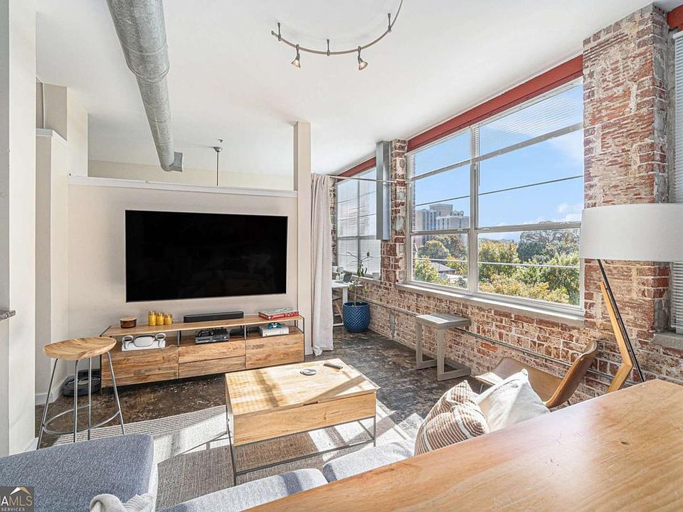 Top-floor condo in the heart of Midtown with an open city view and large picture windows that fill the home with natural light. The entry foyer gives you the perfect drop zone for keys, shoes, and bags before stepping into the spacious living area. Modern industrial charm shines throughout with polished concrete floors, exposed brick, and exposed ductwork that highlight the building's character and history. This flexible layout offers plenty of room to customize-ideal for a home office, dining space, or creative work area-along with generous closet space for storage. The unit includes a full-size washer and dryer and two gated, covered parking spaces. Community amenities include a fitness center, resort-style pool, clubhouse, theater room, business center, secured access, and on-site management. All just steps from restaurants, shopping, Piedmont Park, and the best of Midtown living.